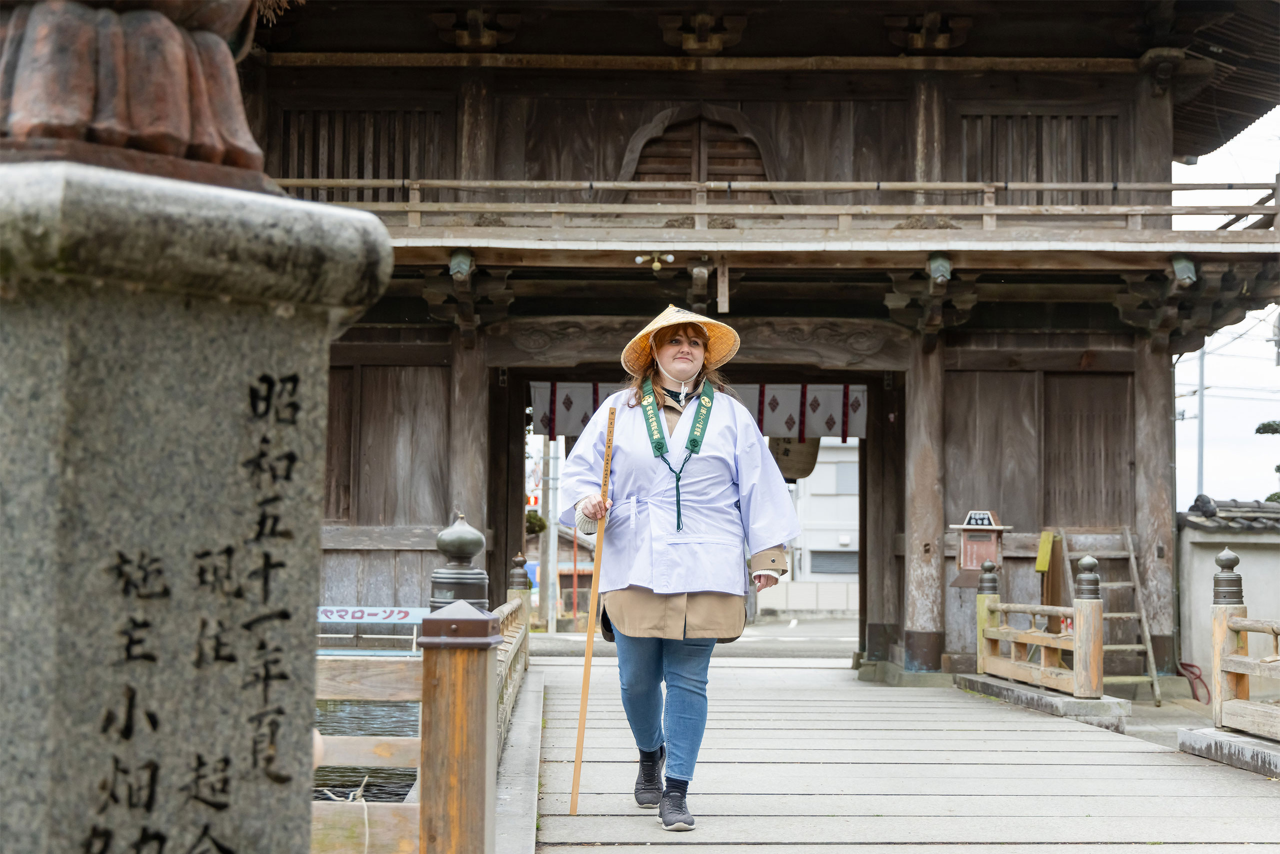 Walk the Shikoku pilgrimage route from Temple No. 1 to Temple No. 2 while wearing white attire (120 minutes)